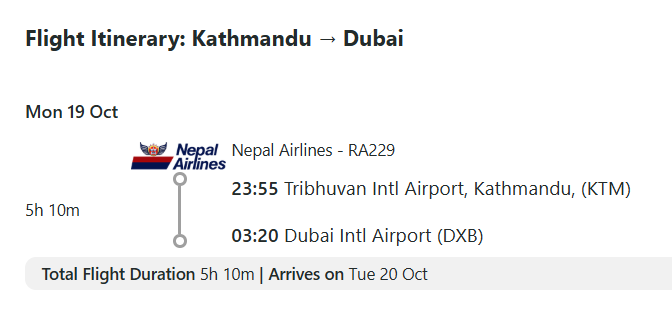 - Distance from KTM to Dubai: 3,000 km (Approx.)